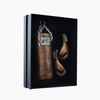 O Kit Cleto Reyes Mini Saco de Boxe e Mini Luvas é um presente perfeito para os entusiastas de boxe e da marca mexicana Cleto Reyes. Feito com atenção aos detalhes, é uma mini obra-prima que replica em escala reduzida os míticos Luvas mexicanos, capturando a essência da marca. O Kit vem com uma embalagem elegante, no interior da qual estão uma miniatura de um Saco de Boxe e uma miniatura de um par de Luvas de Boxe de boxe. Uma peça de exposição.