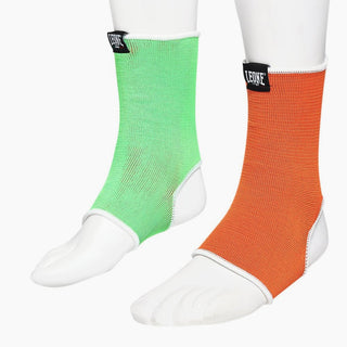 As Tornozeleiras Leone 1947 Double Face AB716 distinguem-se pela coloração dupla. Ideais para usar em encontros e competições de desportos de combate. Feitas em algodão elástico reversível, estão disponíveis nas cores : vermelho-azul, preto-branco, verde-laranja. Perfeitas para oferecer suporte aos tornozelos e proteção contra lesões e abrasões.